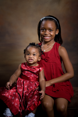 The pleasure of photographing weddings is that there are so many other opportunities for providing my clients with additional photography. Such is the case with Chiante Brice. Immediately after booking her upcoming wedding with us, she was dying for Dana and I to create some images of her 8 1/2 years and 1 year old daughters. The girls had been photographed other photographers before, but the biggest disappointment was getting a great shot of Lailah by herself and together with equally good expressions. In fact, Chiante warned us that that was our challenge and if we could accomplish it she would give us a million dollars. (Just kidding!) After what Lailah put ALL of us through (me, Dana, Xya, Chiante, and grandmother) we all deserved a million dollars. Nevertheless, we set out to do what had been impossible before. The following images you see of Xya were a breeze to create. This little girl LOVES having her portrait taken, so while everyone else was chasing Lailah around the studio, I keep photographing her. An accomplished cheerleader, I just let Xya do whatever she thought were good poses, then I added my minor corrections. I see Xya as a little girl who is going to be famous one day because she is so confident about herself. Now, the images of Lailah were FINALLY created after a hour of trying to pin her down in one spot. So often the best shots of children are made just when we are giving up and turning off the camera. In fact, the only way to get a decent shot of Xya and Lailah was to drape Chiante and include her in the images. I actually, love the fact that we have a complete story of each girl and then beautiful images of them with mom. Ladies, you are gorgeous.